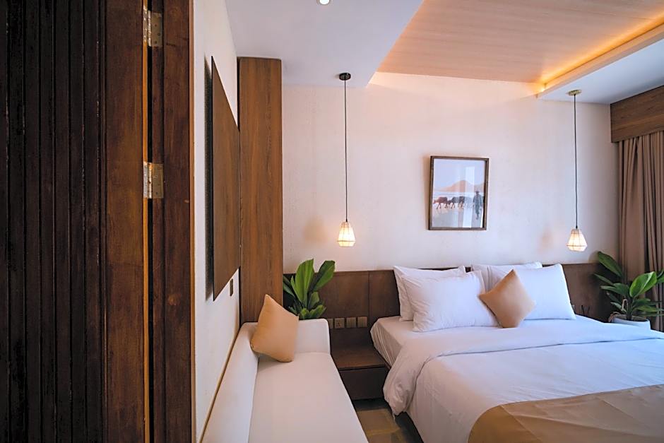 The spacious twin/double room offers air conditioning, soundproof walls, a terrace with pool views as well as a private bathroom boasting a walk-in shower.